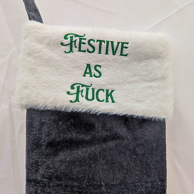 Add a little wickedness to your winter wonderland with the Festive as F*ck stocking. Big enough to hold all your bad decisions, emergency snacks, and that one “totally ironic” lump of coal. Soft plush fabric with green glitter design, and just enough attitude to make your nan raise an eyebrow.